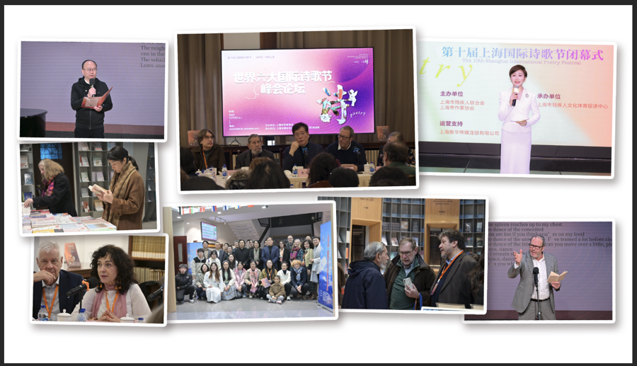 12月9日晚,第十届上海国际诗歌节顺利闭幕。当日上午,与会嘉宾在思南书局诗歌店与读者互动交流,下午出席在上海交通大学人文学院举办的“诗歌之桥”——著名诗人与大学生恳谈交流会。傍晚,上海书城内诗意流淌、暖意融融,用诗歌表达心声的残障者与来自世界各地的知名诗人走到一起,第十届上海国际诗歌节与“阳光悦读”残疾人读书系列活动“牵手”,以这场特别活动画下共同的句点。新汇集团上海电子出版有限公司出版了相关主题诗集《AI时代·诗歌之道》。